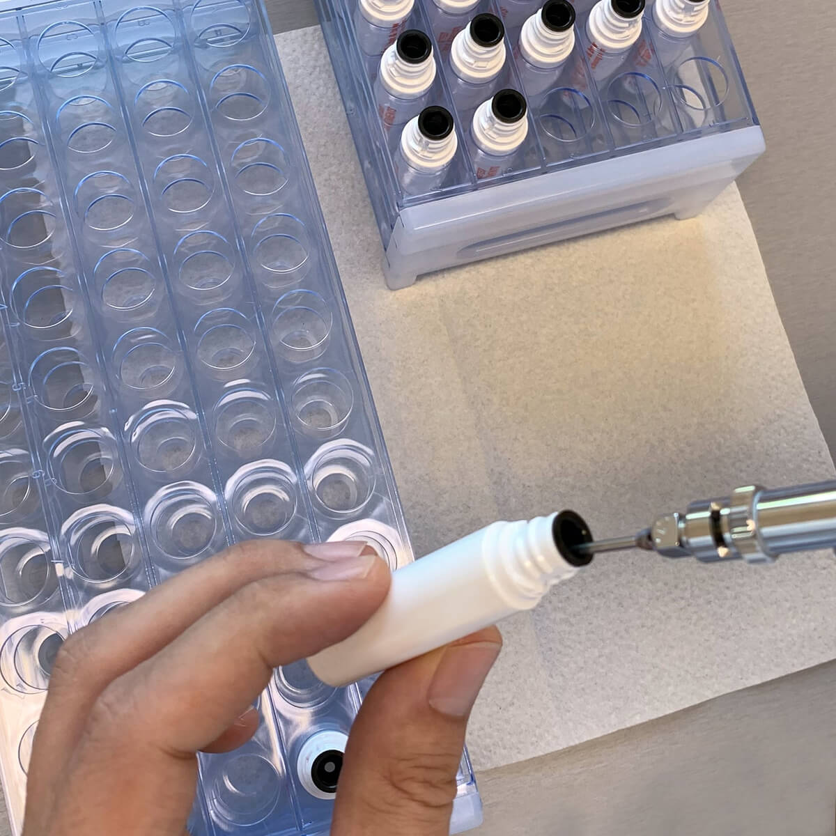 Zvolíme účinné látky, vyladíme poměry a testujeme na různých typech pleti.